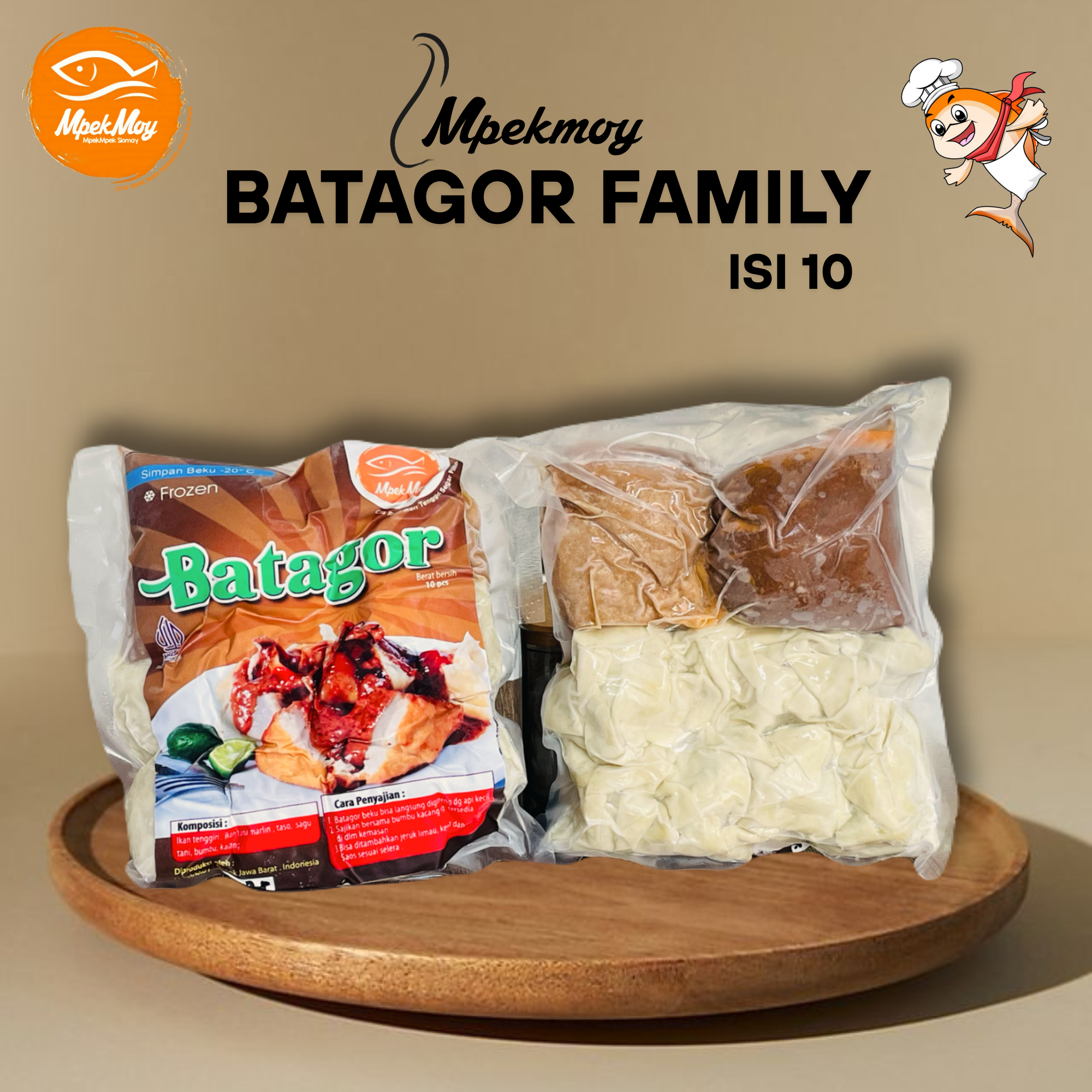 Batagor Ikan Tenggiri Family Pack isi 8pcs Batagor dan 2pcs Tahu baso, sudah termasuk bumbu kacang. Bisa langsung dikukus ataupun langsung digoreng